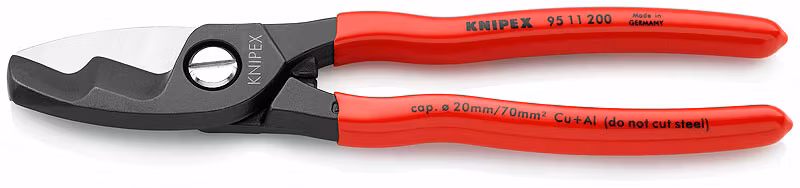 95 11 200 SB Kabelsax. För att klippa Cu- och Al-kabel. Inte lämplig för ståltråd och hårt dragna kopparledare. Härdade skär med precisionsslipning. Klipper
